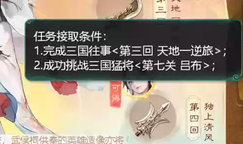 完成三国往事第四章并且通过吕布关卡便可以激活。