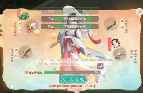 增加好感度可以延长貂蝉使用时间,目前看来340满好感度加上自身30天,最多可以使用一年之久。