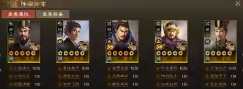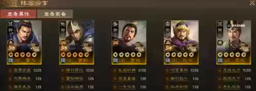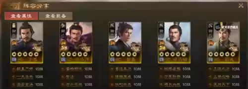 后排这三个弓兵比较固定,郭嘉利用自身减1CD的特性给群体上资军提升属性,然后携带黄天当立,每隔一回合就能放一个。