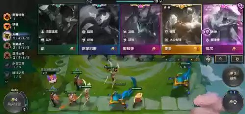 前期,可以搭配天神和重装战士的羁绊,这些都比较好凑齐,重装战士低费卡就有四个,天神中的低费卡也有三个,如果是天神的天选,6人口可以轻松凑齐4天神、4重装战士。