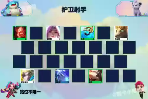 5阶段:八人口开四护卫+四迅捷射手即可,后续基本就是换站位的操作上限了,能够前四就是胜利