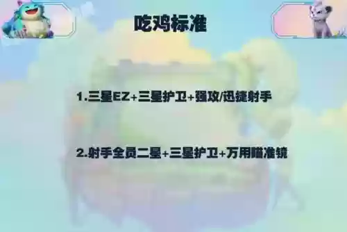 由于阵容的上限并不高,也就是说如果需要吃鸡是需要大量的三星质量卡以及更优质的强化符文加持,比如除了霞以外三位迅捷射手三星+其中两个护卫三星+强攻/迅捷射手之心才算是吃鸡的标准,因此在那么苛刻的要求下,大家还是放平心态,前四也是胜利的一种