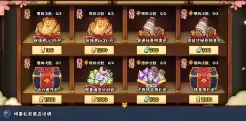 限量通灵材料包:限购4次,金币递增1000/1400/1800/2200,性价比不错,战力党推荐买2次,4次有钱的话都可以买。基本上每个月都会出现,快许愿宝库了不够的可以不买。