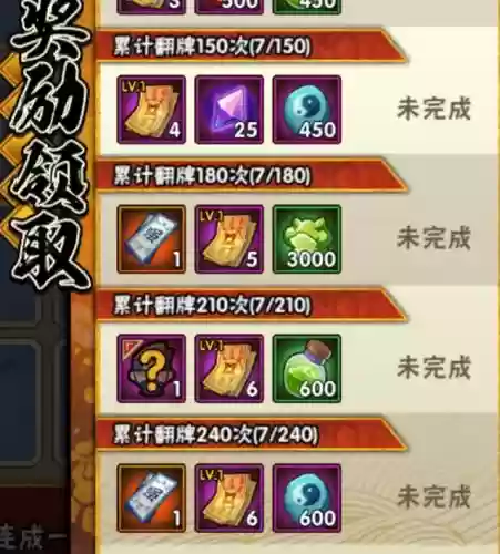 这个翻拍活动不难,只要横竖斜连城一线即可,8步以内的奖励比超过要好。累计翻牌240次奖励全部可以拿走,要及时领取不补发(也没有值得卡的奖励)