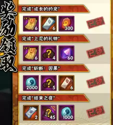 回忆宇智波带土的一生,蛇叔一次看完奖励就全部拿走了!hhh~未领取的奖励会返邮箱,但是没有值得卡的奖励。