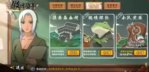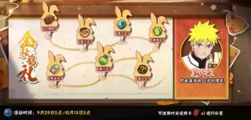 累计登录8天就能得到漩涡鸣人【中秋限定】,这类强度一般都是娱乐忍者反正免费送算不错了。hhh~错过的小程序领取时光逆转卡,可以补签!