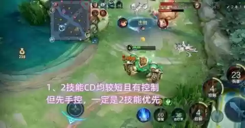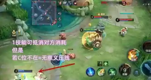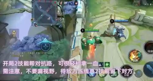 帮助发育路时,要占视野,在线上应该结合1、2技能与对方换血对抗,有1、2技能时使用存1+2a+1a的方式打出连续控制,期间如己方C位不跟,占视野后游走即可。