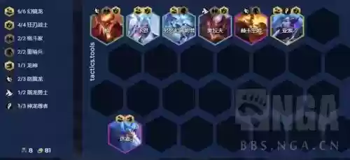 4阶段之后,金鳞龙在高羁绊状态下,多多追三,可以越战越强,而钱也可以变阵转化为95阵容,这个版本后期95是真的强。