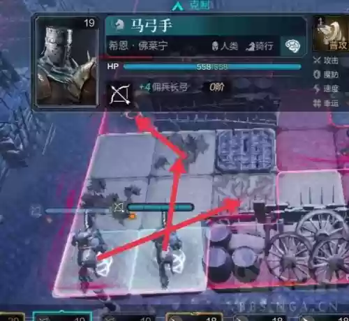 双弓骑正式开始接战,下图下方的弓骑先动。