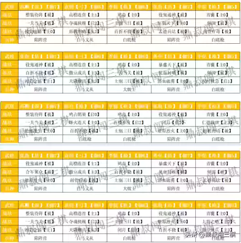 结语:以上S级战法的组合搭配来自棋圣会部分阵容,而低配的S级和A级战法的组合是鼎叔根据对游戏的理解以及技能循环表组合搭配的,仅供大家参考,不喜勿喷。