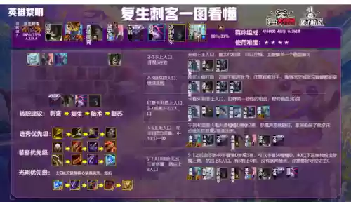 刺客的难度是比较高的,因为涉及连败知识,和刺客机制这两点,所以常规的玩家很难玩懂这种阵容,但是这种阵容玩会了又特别强,现在的刺客不像卡卡六刺那个时候简单,可以6人口直接4刺客锁血,现在4刺客必须7人口,所以要空城速7,这个如何连败那么久,血量还健康,就是比较难的地方了,因为7人口想锁血,就需要很高的质量,对经济有非常高的需求,起码能做到3-5上七,然后卡着50利息D两星梦魇到4-1,才算是基本功完成,后期也要看对位,三星梦魇更是必须拼,再次的提速节奏时间点也是要熟练掌握的。
