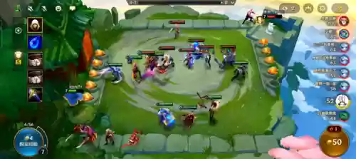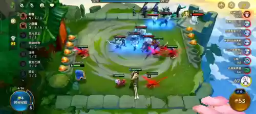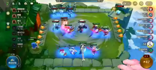 打野开始卡着50利息上人口,3-2上到6人口,从打野开始就更考验稳血的技术,通过各种组合减少掉血,主要是靠斗士、黎明、哨兵、刺客这些混搭。