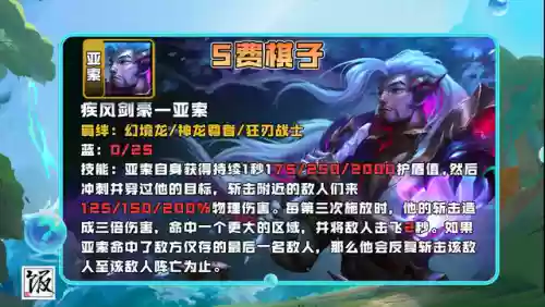 3/6/9怒翼:获得50/125/250%攻速和30/50/80%全能吸血。固有能力:法力值转化成怒气,每次攻击回复15怒气,怒气满后获得狂怒状态,获得持续4秒的30%攻速加成。