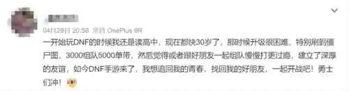 对于玩家群体而言,DNF已然是一个老朋友一般的存在。这次官方所策划的一系列活动,不仅让玩家找到了最初的时光和独家记忆,更是借此契机让玩家们再次相遇、相知、相伴。当然,不仅仅是老玩家,DNF以IP文化构建起来的内容矩阵,也在不断吸引圈外新用户加入到这个生态当中来,随着DNF手游影响力的不断破圈,有不少刚接触到DNF手游的网友开始戏称自己是“DNF十年老粉”,表示要在公测当天冲一把。
