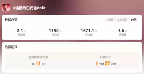 5月14日,地下城手游官宣跨界联动李小龙并发布TVC,随后在5月16日,DNF手游正式公布迪丽热巴为游戏代言人,这些消息一经发布相关话题便迅速冲上微博、抖音等各大平台热搜榜单。微博平台数据显示(截止发稿前),单个平台单个热搜话题阅读量就超过2亿。