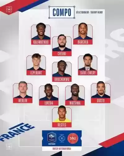 法国队最新一期U21去年9月与丹麦U21比赛的首发,黑人依然占据绝大多数