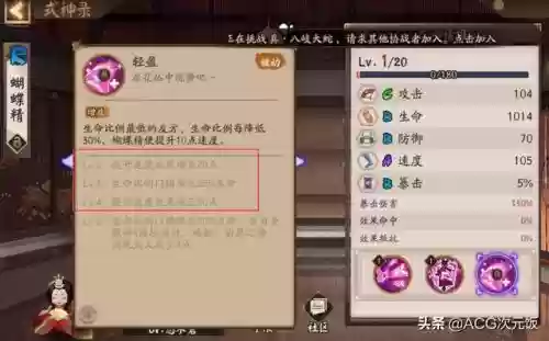 但是这套阵容对于御魂的要求不低,虽然有食灵的加伤以及蝴蝶精的涂佛加伤,但要想秒掉第二回目的怪物,阿修罗得有面板超过23000的狂骨歌姬套。不过饭笥的要求并不高,满技能15000的面板就差不多可以了。另外,食灵也有技能要求,二技能不能升满,不然在蝴蝶精普攻时可能会带出协战浪费时间。