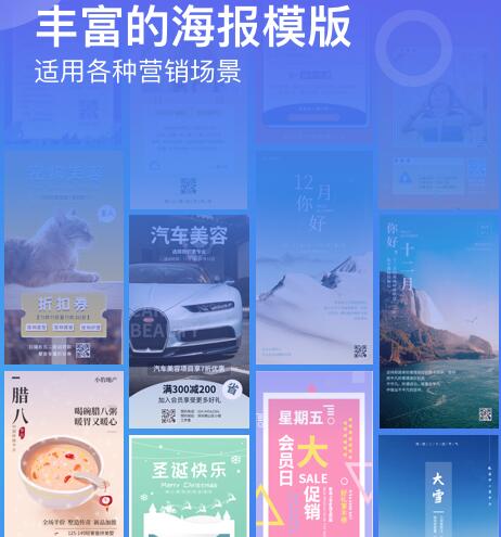 微商海报制作软件是一款海报设计应用,微商海报软件专门为微商量身定做,微商海报制作软件海量的海报模板,适合各类应用场景,使用微商海报制作软件简单快速的制作流程,一分钟即可完成一张海报。