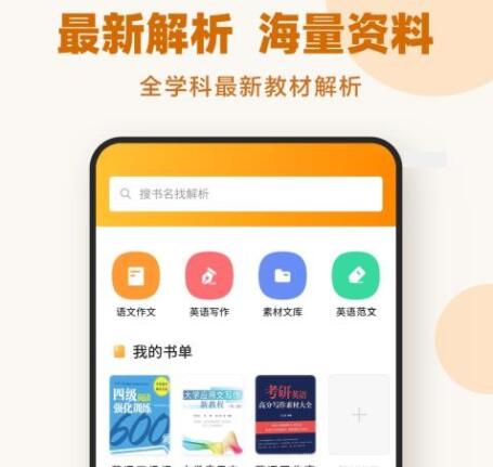 作业答案下载器APP是一款提供作文素材的学习软件,平台中提供了作文方面的书籍资源以及学习资料,让学生可以通过线上阅读书籍的方式掌握更多的写作技巧,运用掌握的技巧不断提升学生写作能力,让学生的写作水平得到提升,轻松创作出经典的文章,帮助学生轻松解决写作的难题;作业答案下载器安卓版主要提供了语文作文以及英语作文的学习资料,可以让学生写作更加简单,还拥有各种类型的写作素材,让学生运用各类素材提升作文的质量,积累更加丰富的美文美句,为提升文章的质量提供资源,需要提升个人写作水平的用户赶紧进入平台体验吧。