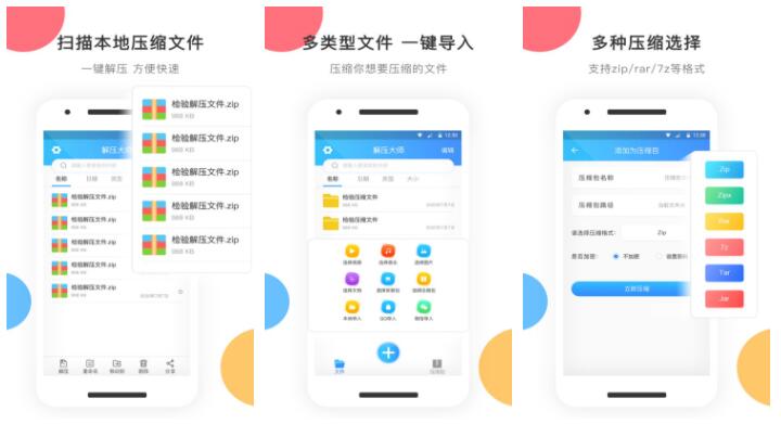 解压缩软件是一款强大的是一个集解压缩/压缩和文件管理于一身的小工具。可以一键解压zip、7z、rar等常用的几十种格式压缩包。支持解压与压缩、支持加密压缩、支持加密解压等功能。