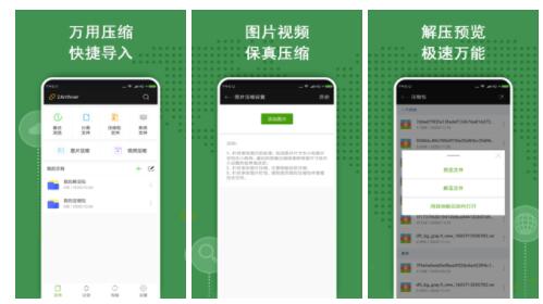 解压全能王是一款高效的压缩文件工具,压缩工具可以高效完成文件压缩要求,用户可以使用相册、本地文件等方式进行导入压缩,其次可以选择多种压缩格式当中的一种对文件进行压缩,同时可以对压缩的文件进行重新命名,方便自己可以快速搜索查看文件。