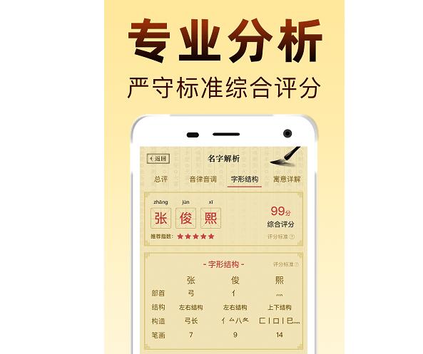 嘉铭宝宝起名取名app是一款在手机上运行的起名取名软件。该软件从康熙字典、笔划、字形、字义、音韵、音调、五行、生辰八字、三才五格、五行喜用神等多方面,依据周易及现代姓名研究学,运用云计算的快速智能分析能力,协助为宝宝起名取名,解名算命,成人改名。嘉铭宝宝起名取名app全面参考近百种中国古代算命,命理解析古籍,所有内容完全基于原本,按照传统的中国古代最精髓的算法标准进行转换,为用户提供精准的姓名解析。