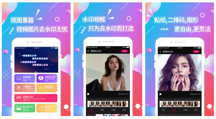 视频抠图app,一般又称视频抠图换背景免费版,视频抠图换背景app。一款集成抠图,抠像,一键视频去水印、视频抠像换背景,视频剪辑,视频制作,图片去水印,视频编辑,图片拼接,图片编辑,图片美化,美图,水印相机功能,还有多多视频多种方法去水印工具,视频剪辑,给视频贴贴纸功能等你来挖掘。