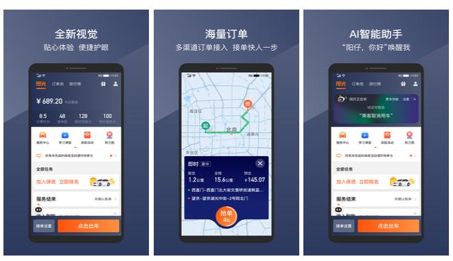 阳光出行车主端App为签约司机和车队的服务端,司机能通过此应用接单、抢单、派单、出车时间、出车车辆、相关认证且自我展示以及实现工资的结算与提现等。