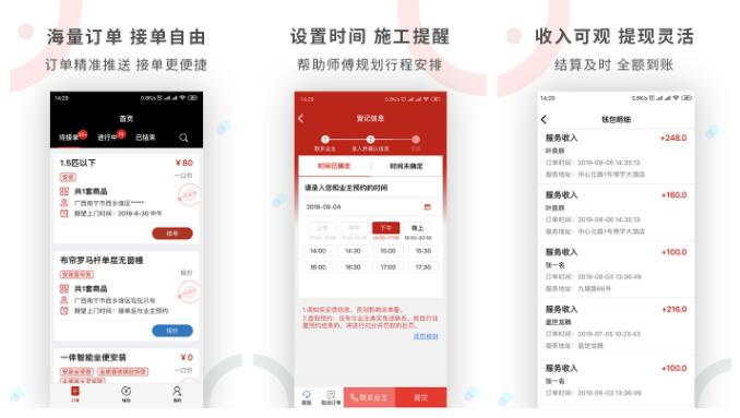 我们是一款为各地师傅们,提供家居上门维修/安装等服务的师傅们打造的一款接单干活的APP。也是一个自主报价、直接收款!并且一键开店、发布服务等围绕接单干活的互联网接单工具!