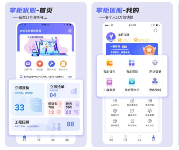 掌柜优服,一般又称掌柜优服师傅版。掌柜优服平台提供给师傅们接单使用的,为客户们进行很好地售后处理,并且还能提供上门维修安装服务,订单数量是很多的,快速抢单,然后和客户预约好时间。