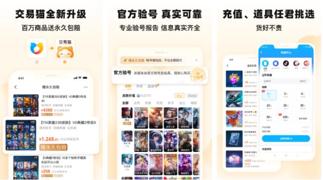 交易猫,一般又称交易猫租号app,交易猫租号平台,交易猫代练打手版。灵犀互娱旗下专业的游戏三方交易平台交易猫,涵盖手游,端游,steam等全品类游戏交易APP,为热爱游戏的你提供,帐号交易,帐号回收,代练等一系列游戏交易服务;同时提供角色转移,永*久包赔,保险服务,实人认证等多重安全保障;游戏交易就上交易猫,1亿玩家选择的游戏三方交易平台。