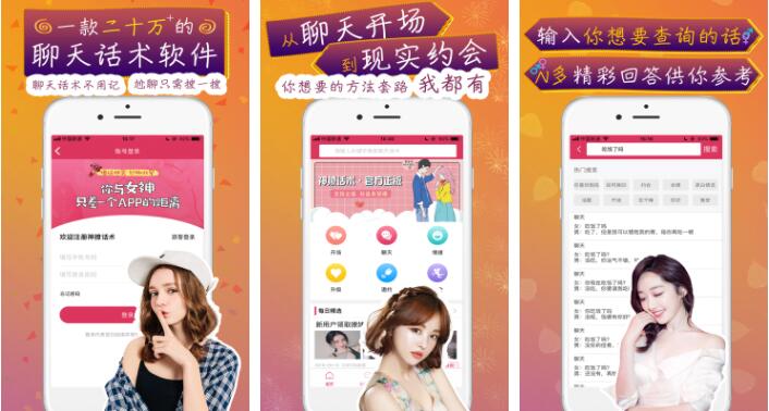 神撩话术是一款移动聊天小助手app,恋爱脱单神器,情感知识分享平台,帮助男生提升聊天思维解决单身问题,致力于解决所有单身男士的尬聊问题,帮您快速追到自己喜欢的女生。