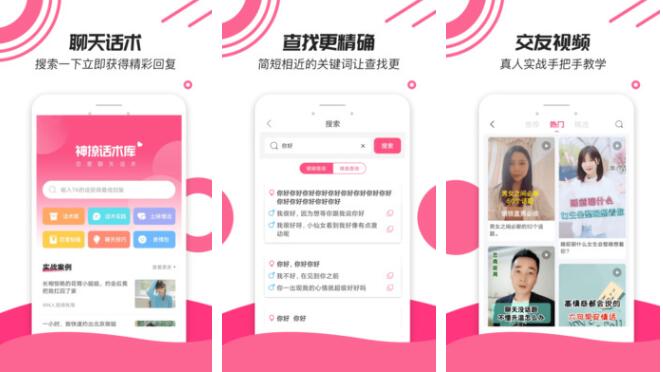 恋爱聊天话术学堂app是专门为广大不会聊天的人打造的一款聊天话术学习软件,为用户提供海量优质的聊天库,用户可以进入应用,自由查看你需要的各种聊天话术,学习更多的聊天技巧,让你在聊天的时候能够紧紧握住妹子的心;软件为用户提供海量优质的聊天话术,各种场合下的话术这里都有,一定能够满足每一位用户的需求,让你可以更自由的在这里进行交友聊天,体验到更多的乐趣所在;