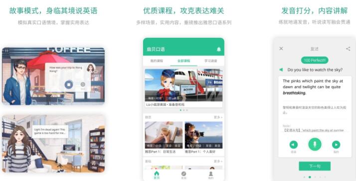 扇贝口语,采用独特有趣的动漫式口语学习模式,让你身临其境地进行互动式学习。