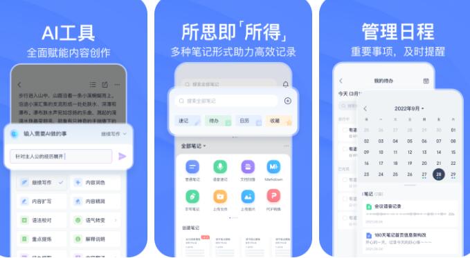 有道云笔记是一款记录工具,通过扫描、语音、Markdown、收藏等记录方式,为亿万用户提供助力。AI工具赋能内容创作,写作、脑暴、润色、提炼、翻译等一键搞定,让工作学习效率倍增。