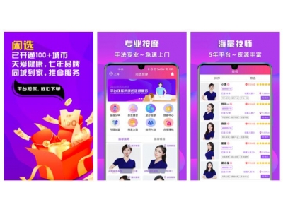 1、闲选按摩 闲选是中国专业的上门按摩APP,通过连接海量优质技师,为用户提供高品质,高标准的上门按摩、推拿、SPA等健康养生上门服务。用户可查看...