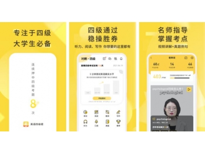 1、英语四级君 英语四级君app是一款英语四级学习软件,拥有大量真题题库+摸底测试+智能学习,帮助用户轻轻松松过四级。英语四级君app拥有多课程、全单...