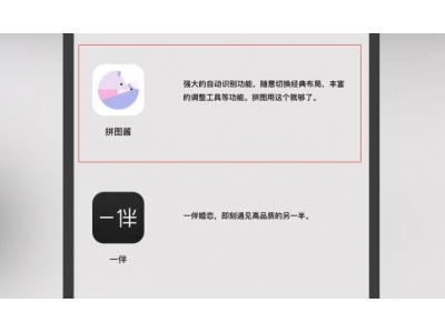 1、拼图酱 Camera360全新推出一款拼图应用拼图酱,通过布局、磁贴、滤镜等元素重新组合照片,充满乐趣。拼图酱app拥有简单流畅的操作体验,无论是调整...