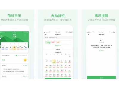 1、排班日历 安心排班日历,是一款专门为倒班、值班工作人群设计的软件。支持手动和周期两种排班方式快速生成自己的工作专属班次日历,设置依据不...